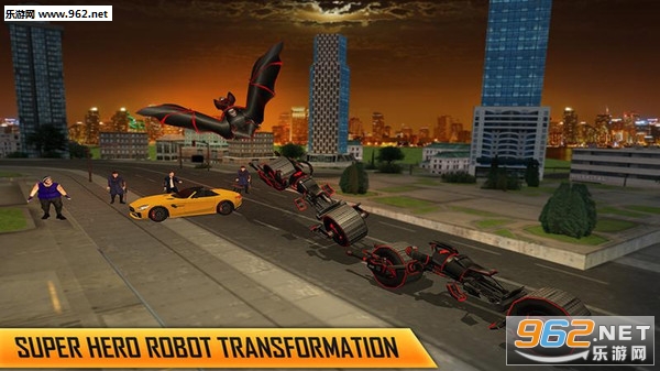飞天英雄机器人玩家将会演绎一个全新的机械英雄,没错带有黑红蝙蝠的宠物飞天英雄,作为飞行英雄你在为和平而战,飞越爆炸现场的铁英雄向恐怖分子罪犯开火!守卫这个城市的重担就交托给阁下了!