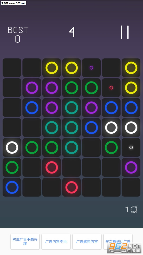 一款非常有趣的休闲益智游戏,游戏的玩法不是那么简单的,因为本身的场地有限而且颜色众多,所以尽量不要让小圆环变大,先调整未知再开始消除。