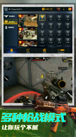 武器种类繁多,支持升级获取更强大的火力装备,部分枪械可实现一击毙命。
