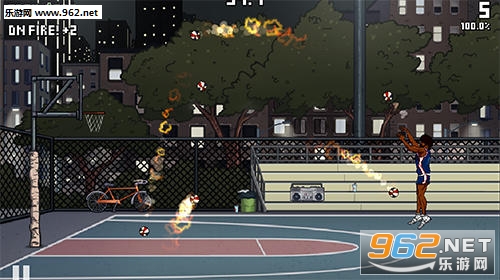 3、练球自带特效,尤其是在投入了三分空心灌篮后有火焰出现。