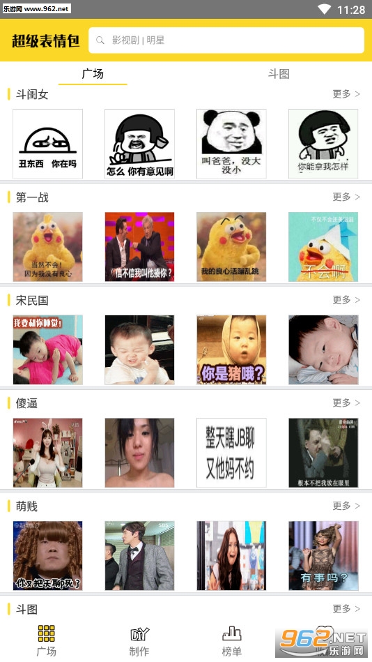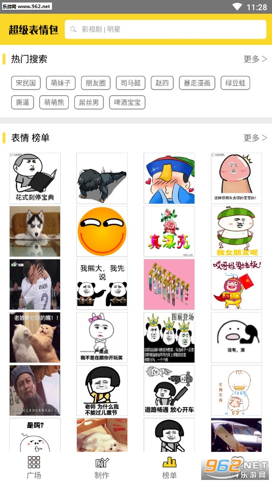 1. 表情包广场集合了海量表情包随便选择,没有转发限制