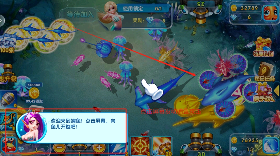 目标优先级:集中攻击高回报鱼种(金鲨银鲨大型鱼),避免浪费弹药低价值目标。