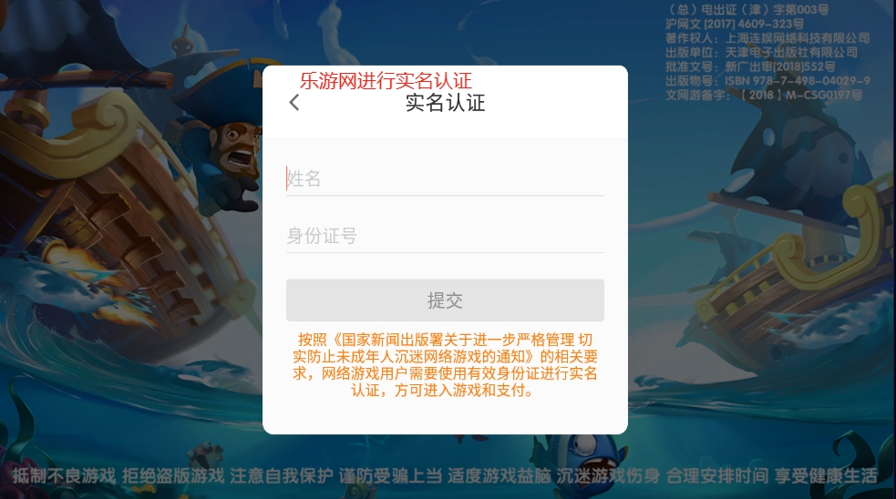 3、由于游戏需要联网对战,在实名认证界面输入姓名及身份证号信息。