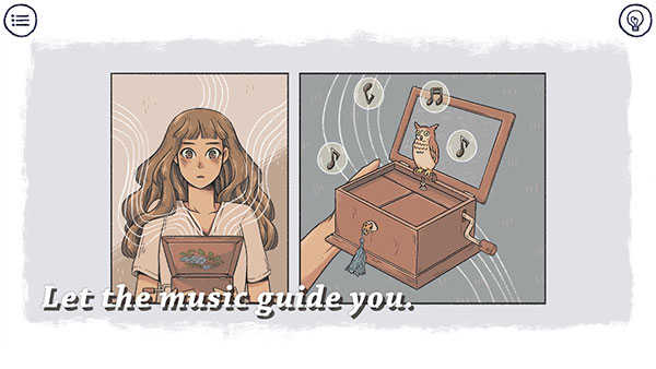 26.一直点击漂浮的音符,Eda拿起音乐盒后,重复转动音乐盒发条,然后点击出现的音符,最后获得【羽毛】。