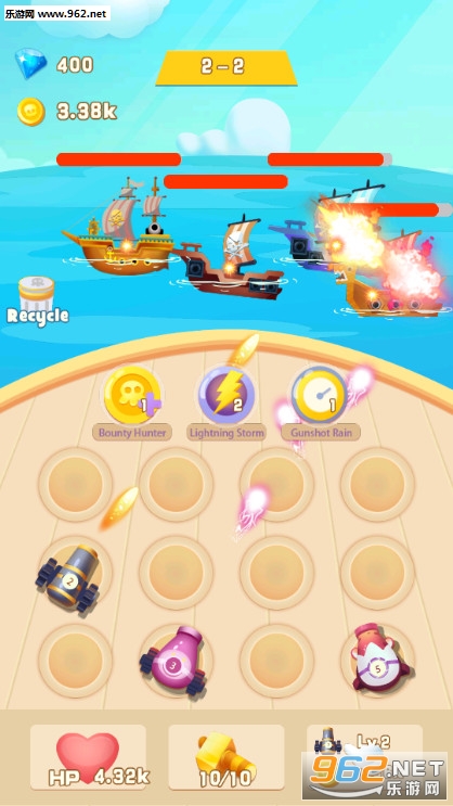 消灭海盗是一款卡通风格的射击类游戏。游戏采用了合并和射击结合的玩法。在消灭海盗中,玩家可以利用自己的火炮去轰炸袭来的海盗船。当你成功完成游戏布置任务,你就可以解锁火炮,当你收集到3门相同的火炮的时候你就可以合并这些火炮令火炮升级。游戏的关卡非常丰富,可以供玩家玩很久。喜欢的玩家快来下载吧!