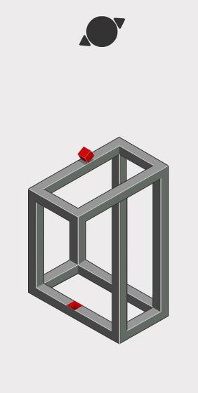 游戏中,玩家需要移动一个红色的正方体沿着几何体的表面移动到其表面上的凹槽,这是游戏唯一的目的也就是同类游戏移动人物从A点到B点的抽象,而几何体的复杂程度决定了游戏的难度。