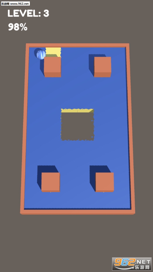 2、滑屏控制滚球的不断的移动涂色到整个房间;