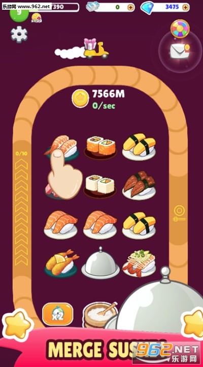 寿司增强是一款画风可爱精致的休闲合成类手机游戏,游戏以各种口味的寿司为主题,玩家需要不断合并创造更加高级的寿司,为客人端上寿司获得金币,操作简单休闲,快来下载吧。