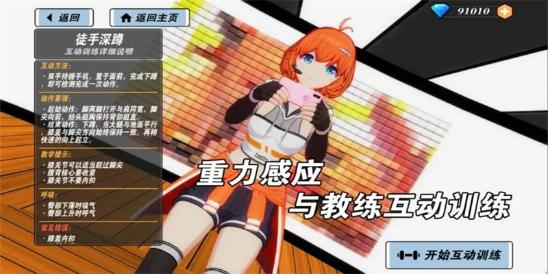 4、严格的说本作不是专业的健身App,而是一款依靠重力感应的健身小游戏。在游戏里一名可爱的二次元妹子,为你制定包括仰卧起坐、俯卧撑、深蹲等简单的健身课程。