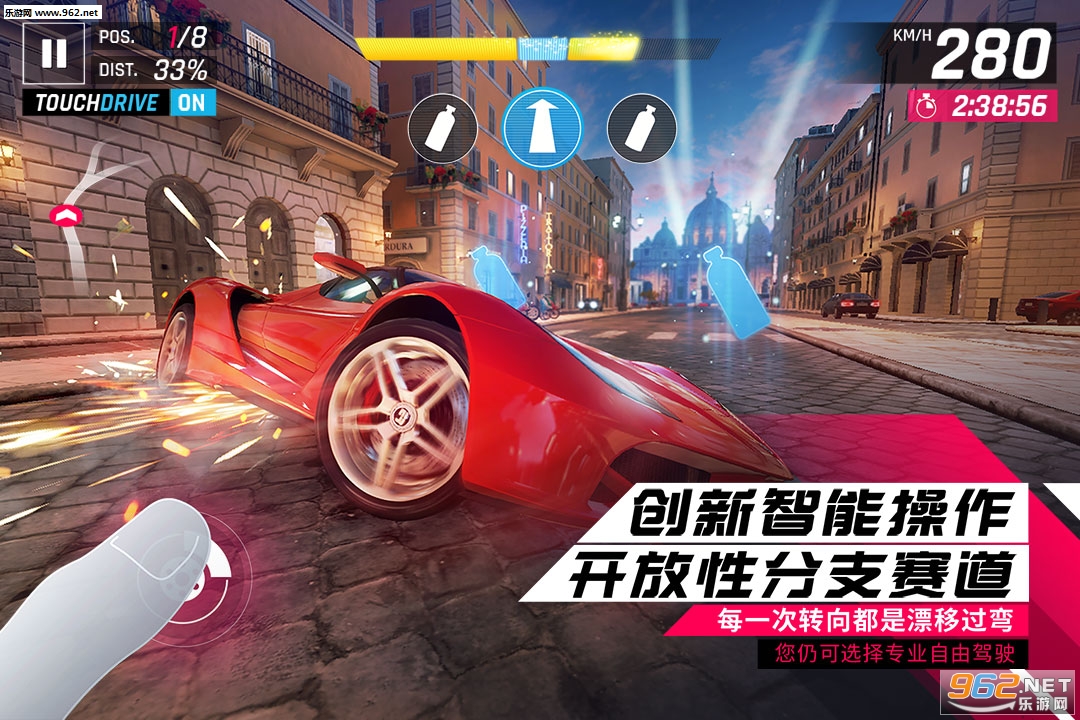 熟练掌握全新驾驶操控方式——创新的TouchDrive,它能极大简化赛车的转向操作,让你的大脑解放出来,专注于街机乐趣和极速体验。