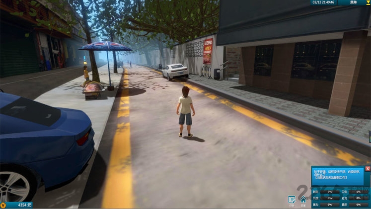 在游戏里你可以做很多事情,可以打工,送外卖,买东西吃,打包,租房买房,诸如此类的生活小事,你也可以触发各种剧情达到各种意想不到的成就,或者堕落到不认识自己,也可以终日无所事事坐吃等死;总之这是一个模拟+剧情的开放世界。
