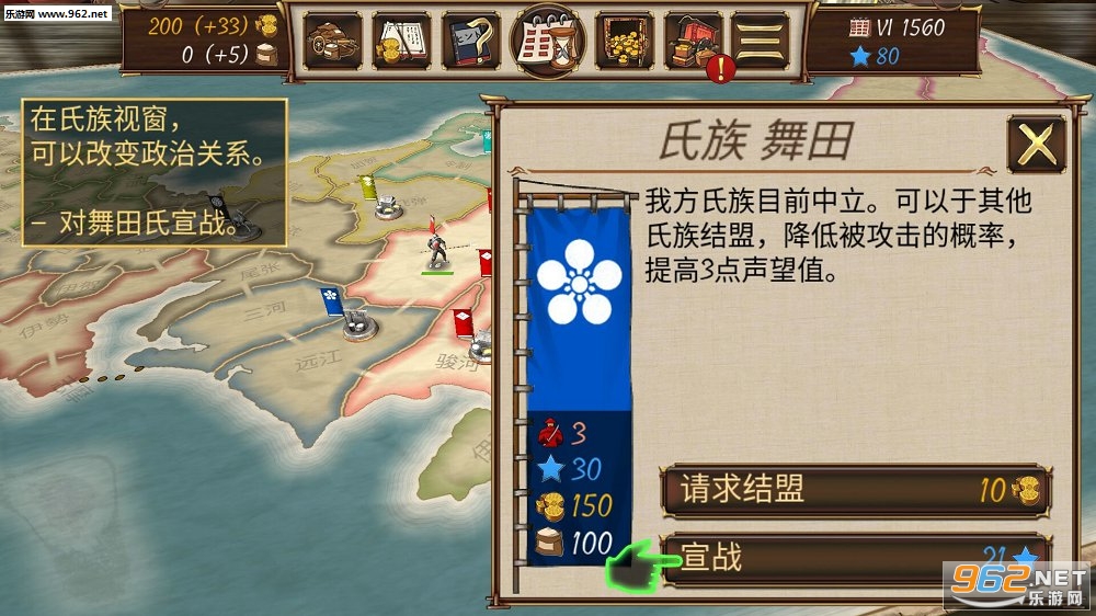 您可自由选择结盟或宣战,提高声望来谈成更有利的交易,让周边邻国心服口服。