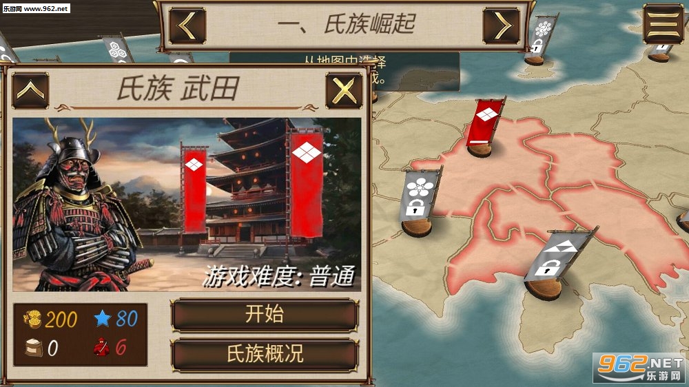 选择日本历史上的十五个氏族之一,体验战役,攻城掠地,解锁单位,巩固势力范围。