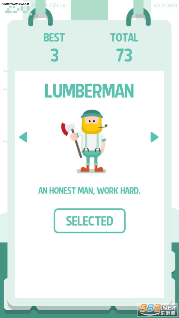游戏画风非常的简洁,绘画风格的角色造型很容易吸引玩家的注意力,场景风格变换多样在游戏的同时时刻保持视觉的新颖享受,色彩渲染丰富让玩家可以在游戏中不会出现视觉的疲劳,玩家在游戏中化身为一名伐木进行游戏。操作简单充满着欢乐的气息。
