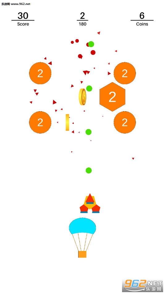 趣味的竖版射击游戏,关卡会出现两种障碍物,一种是带有数字的方块一种是没有数字的方块,有数字的方块是数字为零则击碎,没有数字的方块只能推开,不要让热气球触碰到障碍物了。