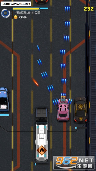 趣味的竖版射击游戏,有着无限模式可以挑战,汽车都是有血量的,敌人汽车被击毁后会有着一些道具出现,比如增加子弹发射个数等,收集金币强化自己的战车,喜欢的朋友可以下载试试。