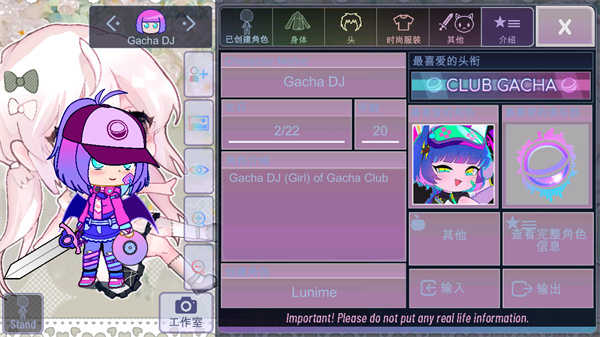 加查甜甜官方正版也叫做Gacha甜甜,是一款采用了Q版卡通风格的手机模拟养成换装类游戏,这款游戏能够为玩家营造出一个开放自由的游戏世界,玩家在这里可以选择自己喜欢的形象开始游戏并且可以在游戏开始之前进行捏脸、换装、背景选择等一系列操作,这样一来就能够使得玩家的形象彰显个性。