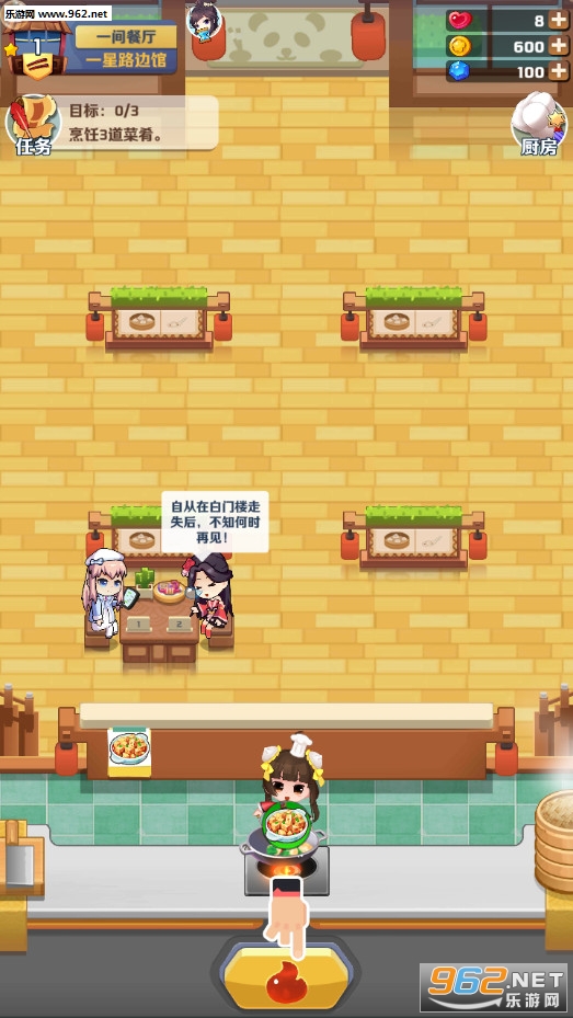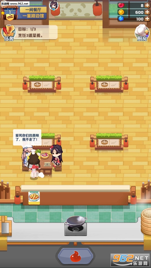 一款非常不错的游戏,玩起来目前来说还是非常有趣的,不断的提升餐馆等级,装饰餐馆,招募养成厨娘,推荐给喜欢模拟经营游戏的玩家。