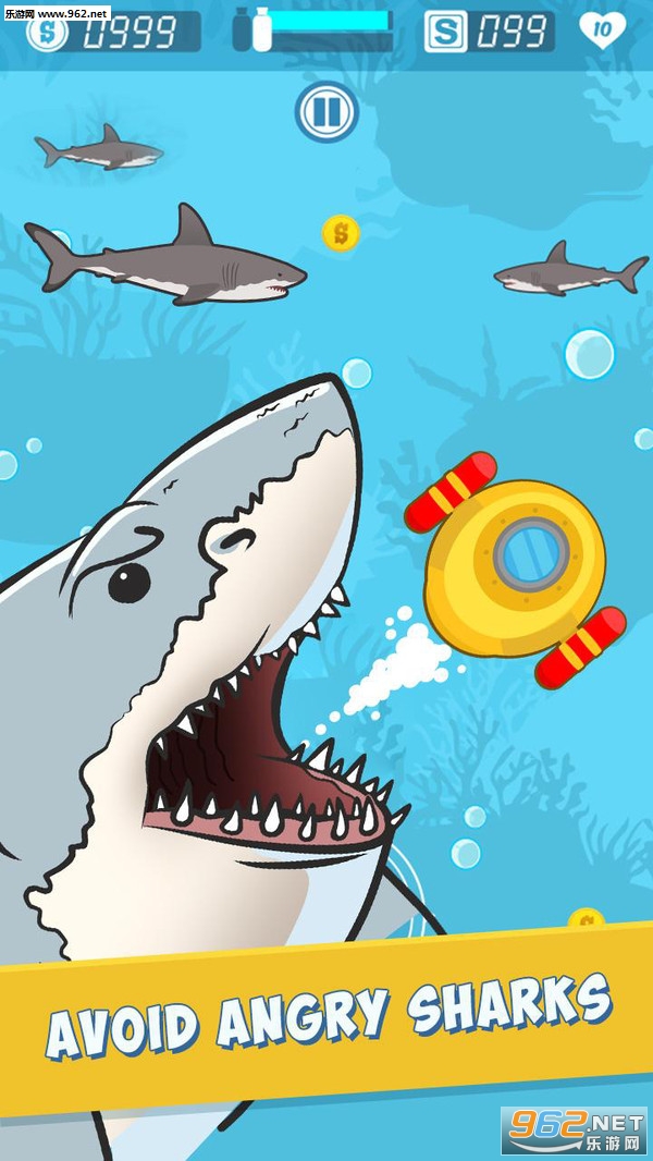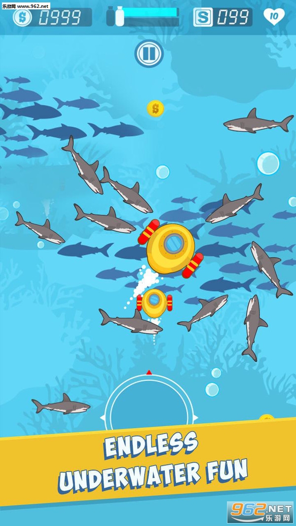鲨鱼在追捕你,所以不要长时间停留在一个地方。让鲨鱼接近而不接触你,并尽可能多地赢得胜利。潜艇 - 饥饿鲨鱼的攻击很容易掌握,但很难掌握,游戏玩法非常容易让人上瘾。因此,准备好一些疯狂无尽的潜艇街机行动。