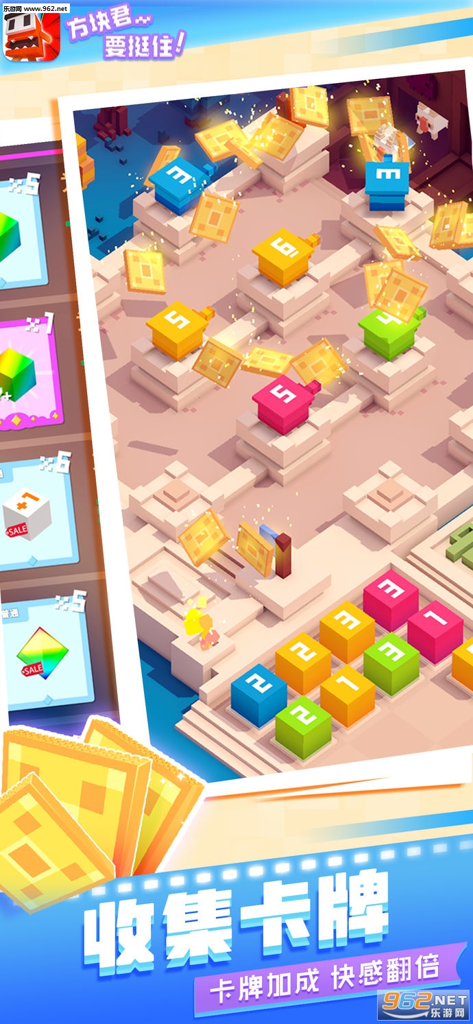 1.游戏的玩法非常的简单有趣,收集大量的金币来升级合成你的方块君;