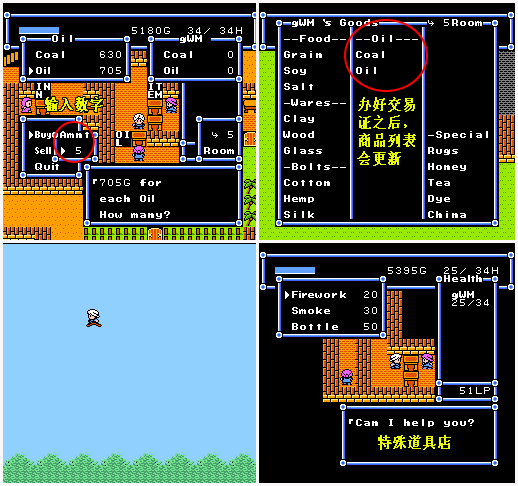 装备和骆驼也是如此,而道具无法卖(道具店没有【Sell卖】指令)。