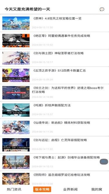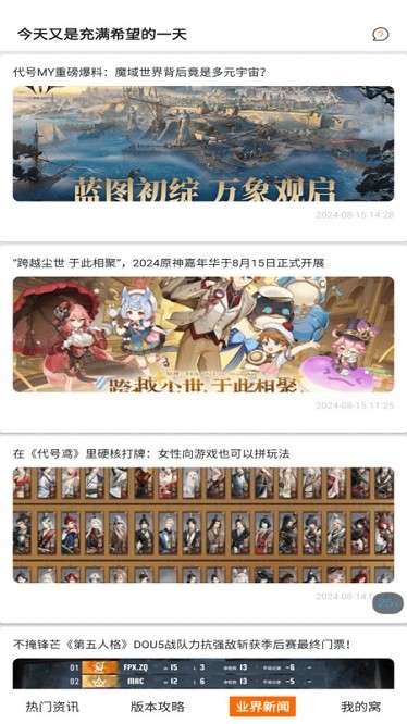 一款专为用户深度解析游戏版本信息和攻略。不同于简单的新闻快讯,前沿情报深入挖掘每款游戏的背后故事、玩法机制、角色设定等深度内容,帮助玩家更全面地了解游戏世界,提升游戏体验。欢迎广大游戏爱好者前来体验。
