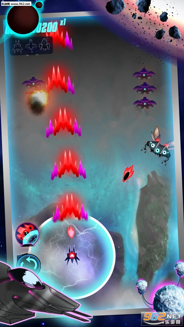1、每级完成3个目标并获得奖励。选择你的飞船,通过收集卡片来提高你的射击能力。