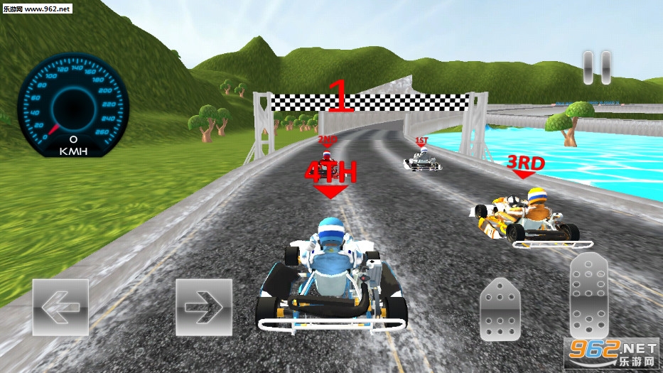 3、在比赛过程中有曲折的道路等着挑战你,也有你的对手故意阻挡你的行进道路,你可以漂移驾驶通过曲折的道路,在道路上尽量摧毁另一辆卡丁车的骑手。