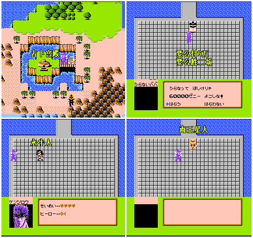 3.如果金钱有60000元的,占卜婆婆会直接占卜出间抜作的位置。如果金钱不足60000元的,得打倒她的二名武士(水牛人、海王星人)才会替主角占卜。