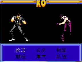 ①主角在地图上每移动约二十步就会遇敌,敌人大都是二三人一组,轮流挑战主角。战斗画面带有街机格斗游戏的风格,但仍属于回合制指令式战斗。主角未组队时遇到车轮战非常不利,幸好逃跑率很高。攻击的伤害不是固定的,有效果不好”、效果一般”和命中要害”的差别,也有攻击落空的设定。