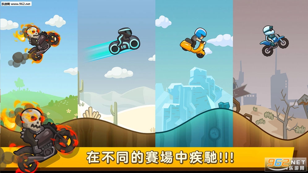 加速、跳跃、翻滚——只需简单的操作,即可充分享受摩托竞速带来的激情与欢乐。