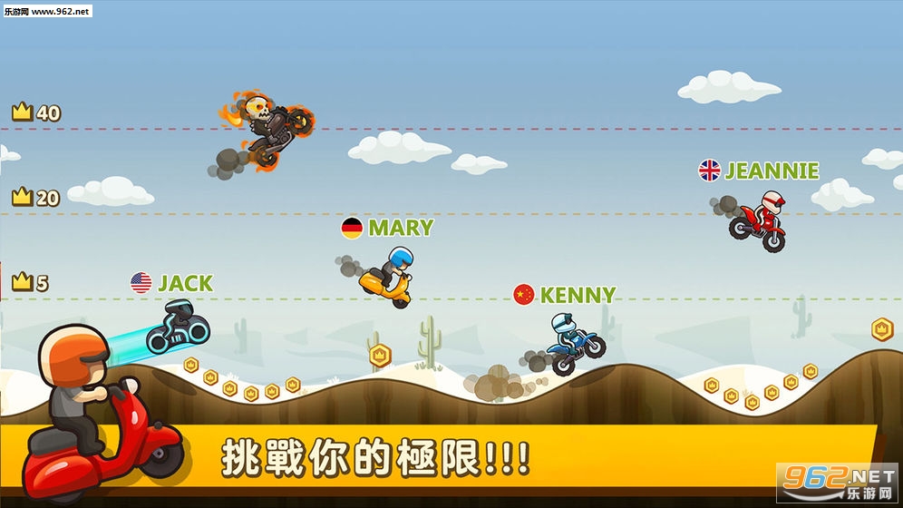 使用当下最新的Unity 3D物理引擎,高清还原了《越野摩托》(Excitebike)的经典玩法,并在此基础玩法再度升级,使游戏更具乐趣。