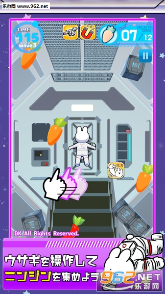 请你帮助这只既有趣又可爱的兔子,在无重力空间里回收萝卜避免饿死吧。