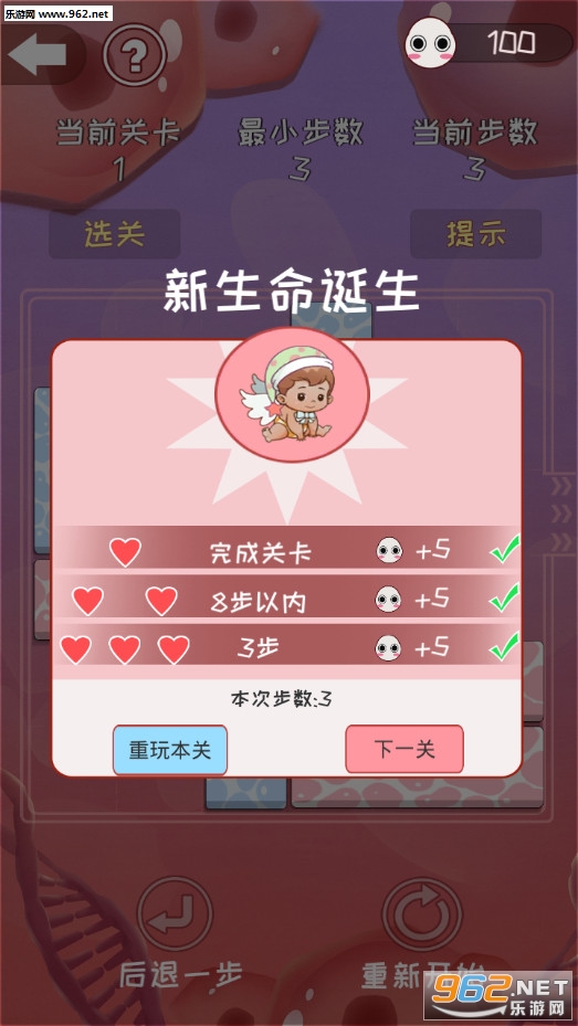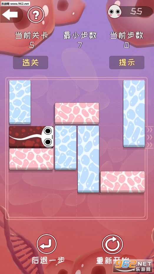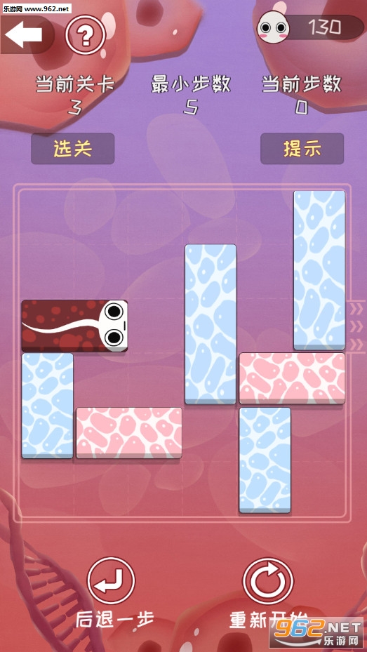 游戏是由小蝌蚪、长短红细胞、长短白细胞组成。玩家通过不停的移动细胞条,让小蝌蚪成功脱困。当玩家遇到自认为无法通关的时候,可以使用系统提供的提示功能,系统会自动帮玩家走出最优的脱困路径。完成一关后解锁下个关卡,根据通关所产生的操作给予不同的评分。