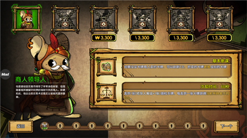 经济大师,初始角色,被动技能是买卖卡牌的时候拥有25%折扣,主动技能是丢弃身上所有卡牌获得3%的黄金收益,冷却时间60秒。