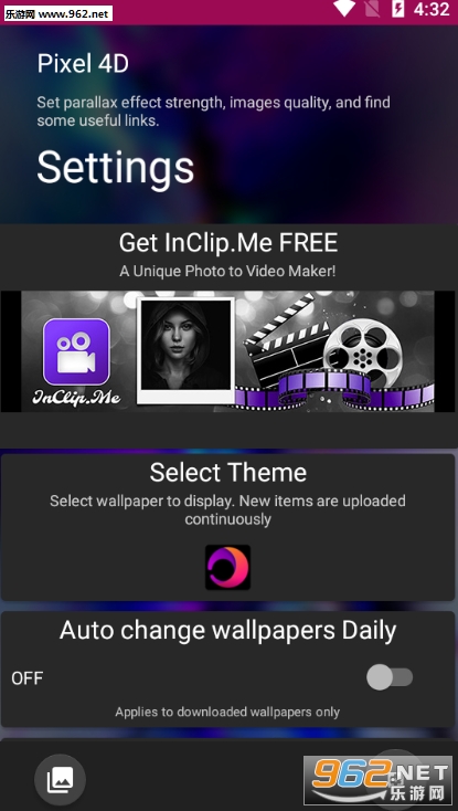 总体来说是一款非常不错的手机壁纸软件,一款国外3/4D全息壁纸软件,就是左右晃动手机3D壁纸陀螺仪晃动那种哦,壁纸资源丰富炫酷,用起来非常的炫酷,喜欢的亲们赶紧下载吧。