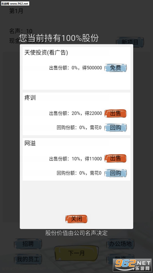 趣味的模拟经营游戏,玩家将从一个小公司开始经营,不断的招募员工,升级自己的办公地点等,融资,扩大自己的公司,喜欢的朋友可以下载试试。