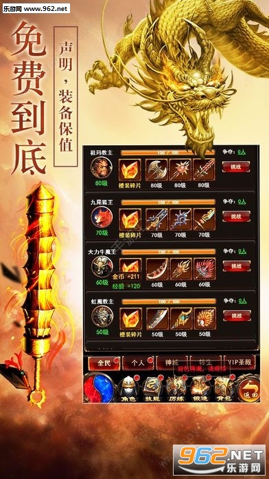 3、首充送红武屠龙,大礼包各种升阶道具,真正的首充玩年游戏。