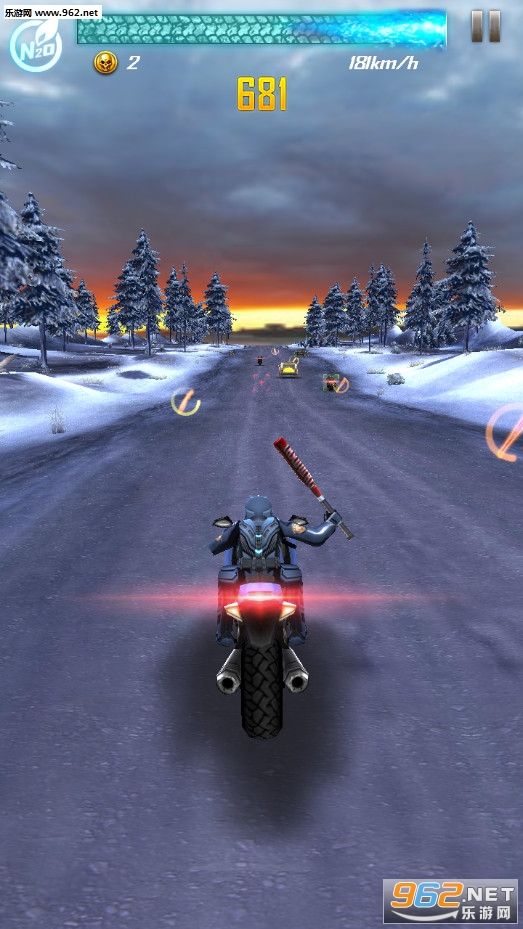 《暴力摩托5》是一款非常有趣的3d公路摩托车竞速游戏,游戏中玩家可以驾驶摩托飞驰在公路上,你可以随处捡到各种道具,然后将挡在你面前的对手统统打翻在地,游戏使用重力感应来控制方向,增加了代入感,还可以改装自己的赛车,赶快出发吧!