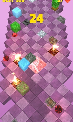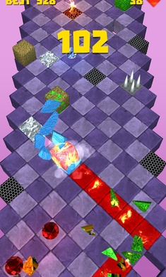 帮助小魔方避开致命的障碍物、陷阱、坑,为了生存和收集蓝色宝石摧毁障碍物和红色宝石解锁新角色,他们有很多!