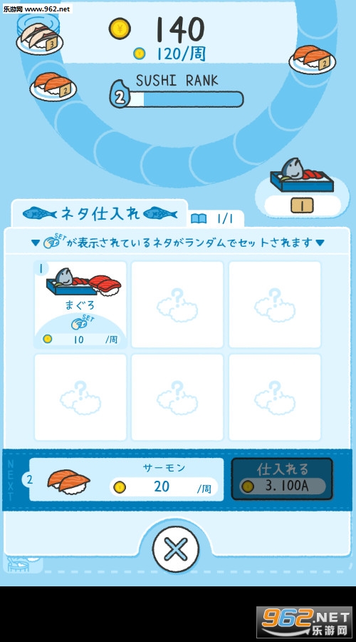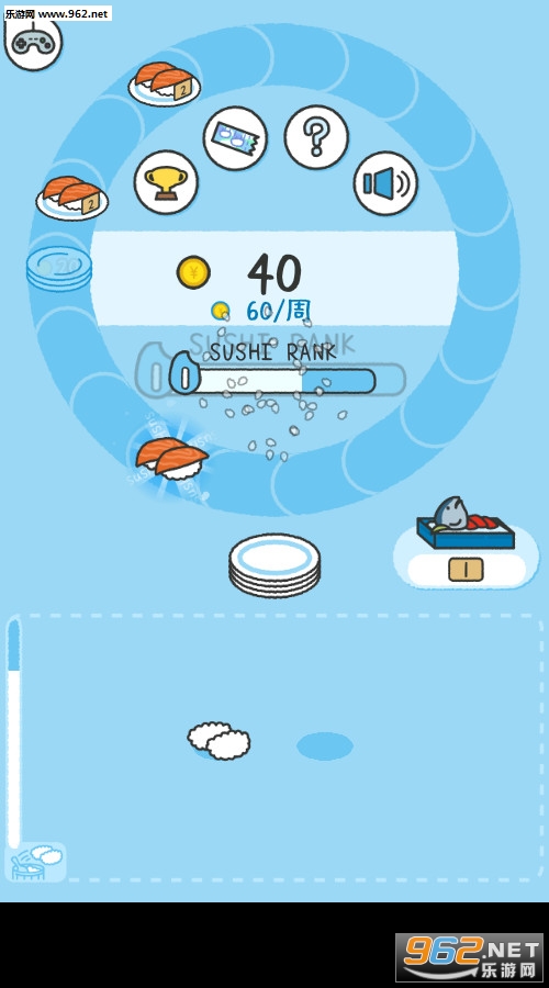 3、爽快放置,将你的美味放入旋转台中,让你的客人唾手可得,多种价格食材的寿司等你解锁购买。