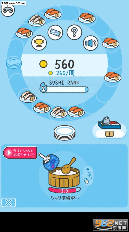 游戏没有像其他放置合并游戏那么简单粗暴,而是非常还原寿司制作的过程和各种细节,吸引你继续玩下去,推荐给喜欢放置游戏的玩家。