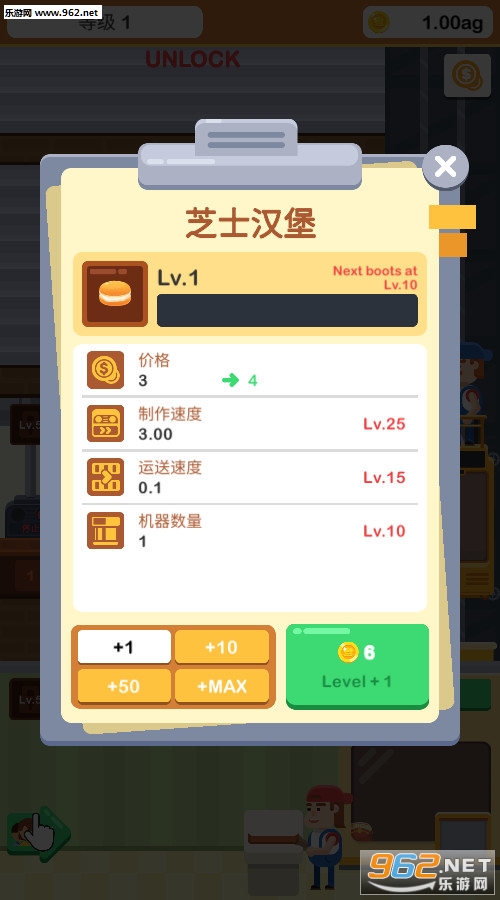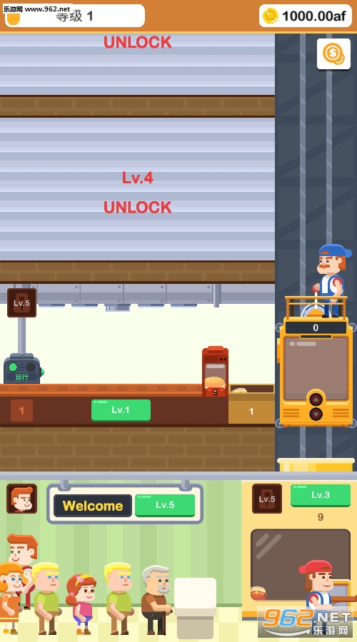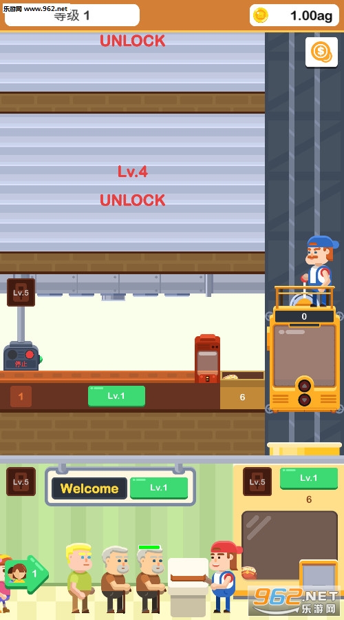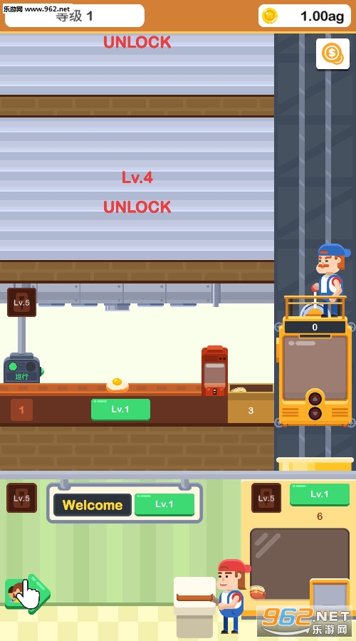 2、工厂设备:升级您的设备,如汉堡制造机,电梯,以加快速度。