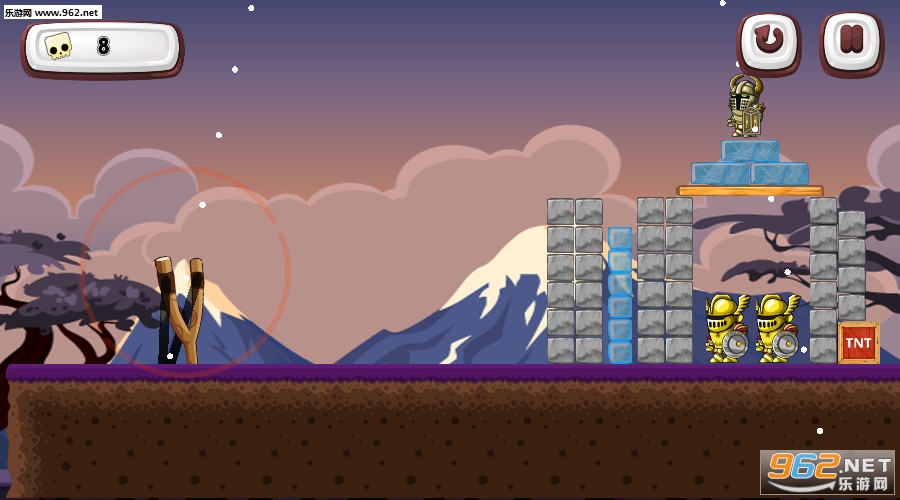 《骑士弹弓》(Knight Slingshoot)是一款卡通风格的休闲闯关游戏,游戏中玩家将使用弹弓将骷髅弹射出去,击毁建筑,消灭在建筑附近的骑士,成功通过关卡。游戏操作简单,拖动弹弓控制方向,松手即可发射,在限定的次数内将骑士全部消灭,赶快下载体验吧!