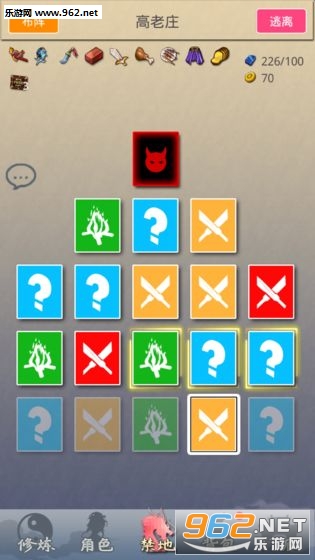 2、高策略性,选择地图行走、组合不同类型的英雄、不同类型的法宝、搭配不同的装备等;