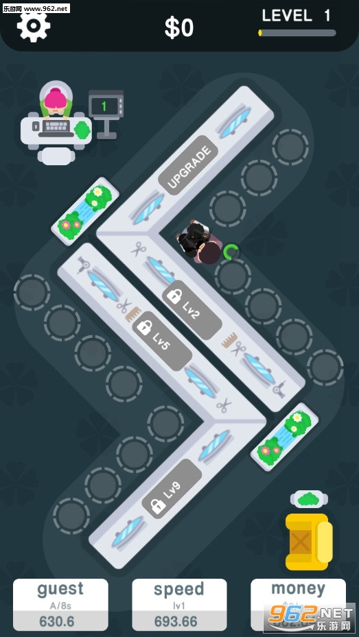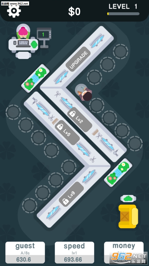 2、玩法简单,玩家要做的就是花钱购买各种必备的装饰和工具,然后就可以开始接待客人理发,赚取金钱,解锁更好的工具和聘用更好的理发师。