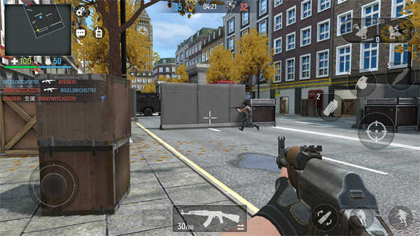 左侧遥感,右侧射击,瞄准、换弹、投雷、武器更换等一系列功能及操作中规中矩,适合绝大多数人的习惯,在一局有限的时间限定条件下,尽可能的击杀敌对势力获得积分,死后可以从基地复活,可与队友协同作战。
