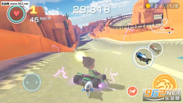 《世界卡丁车》是一款玩法丰富有趣的卡丁车竞速游戏。以为卡丁车只能在赛道上开?错了!在这里,卡丁车可以火箭喷射,可以打开降落伞,在空中滑行,也可以安装氧气罩,在水中一决高下。这里的卡丁车玩法只有你想不到,没有他做不到。游戏里还有丰富的道具,对手就在前面但是却超不过,没关系,使用获得的道具,给对手扔一个炸弹吧!