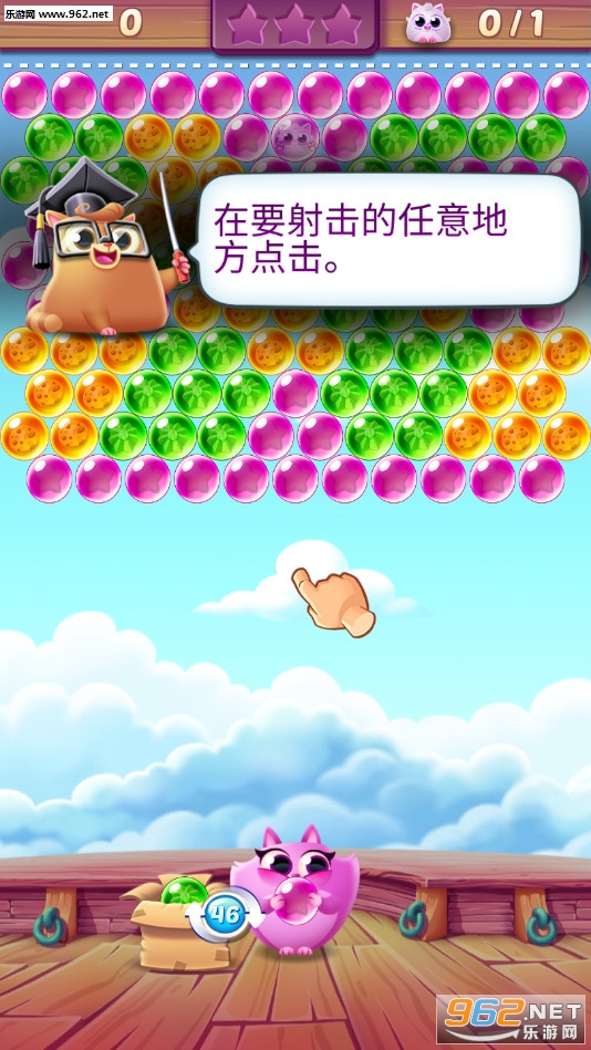 趣味的泡泡龙闯关游戏,可以点击发射机来调整两个发射球的位置,可以点击左边的道具发射特殊的泡泡,当全部的猫咪被救出来完成闯关,喜欢的朋友可以下载试试。