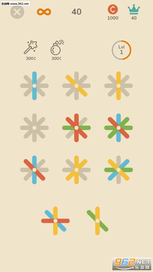 《色棍匹配》(Match Sticks)是一款卡通风格的休闲闯关游戏,游戏采用了一种新颖的消除方式,一个九宫格中每一个格子内都放置交叉与一点的四个色棍,横纵有三个相同颜色的就可以消除,游戏的操作简单,玩法模式众多,赶快下载体验吧!